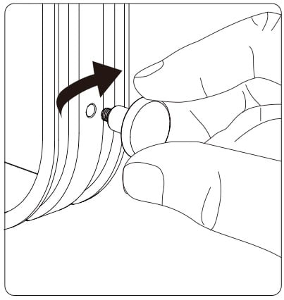To install the reflector, pull back the retaining pin, insert the reflector into the Bowens mount, and rotate it counterclockwise as shown in the following pictures.