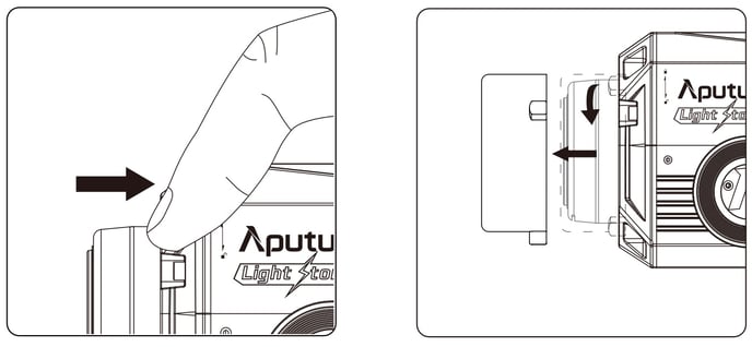 - To attach the control box, rotate the release lever to unlock the quick-release baseplate, then mount the control box onto the Lightning Clamp (the release lever will automatically spring back).